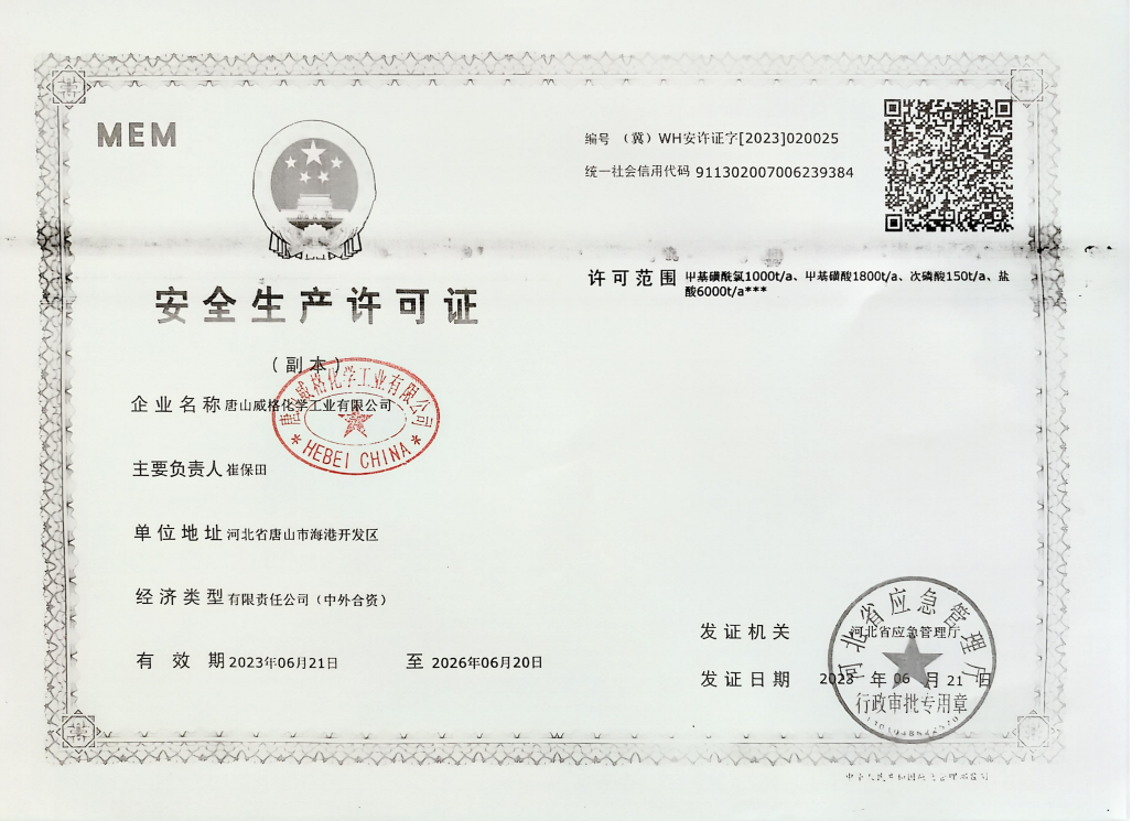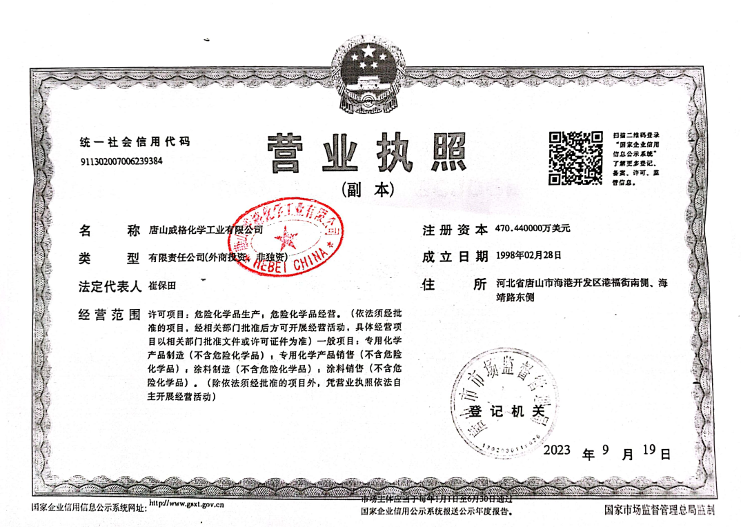 唐山威格化学工业有限公司,是全球性的专用化工品、精细化工品及医药